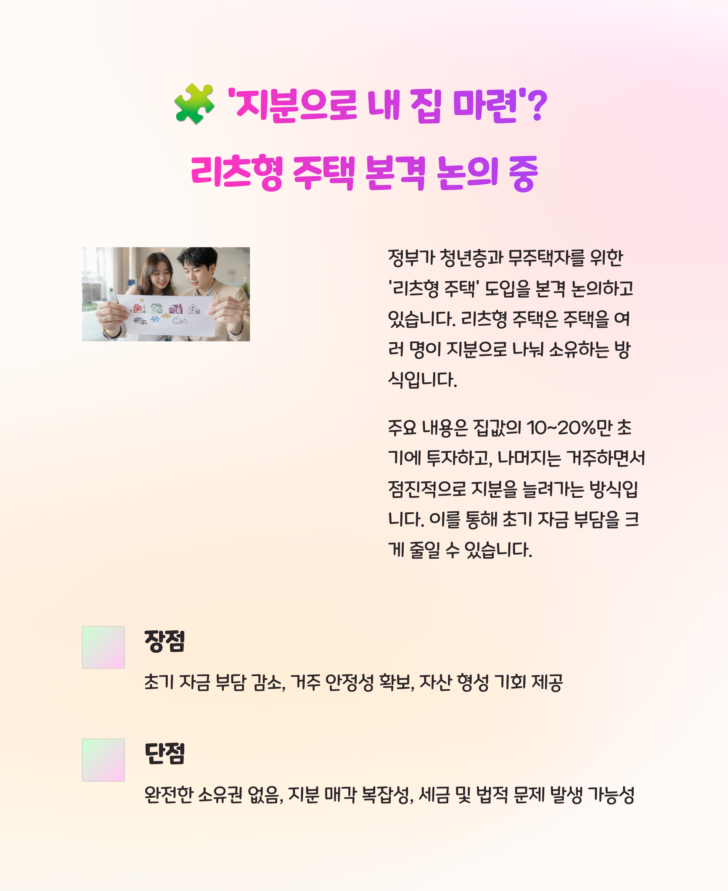 부동산 패러다임이 바뀌는 흐름 속, 새로운 형태의 주거 소유 방식이 도입될 수 있을지 주목됩니다.
