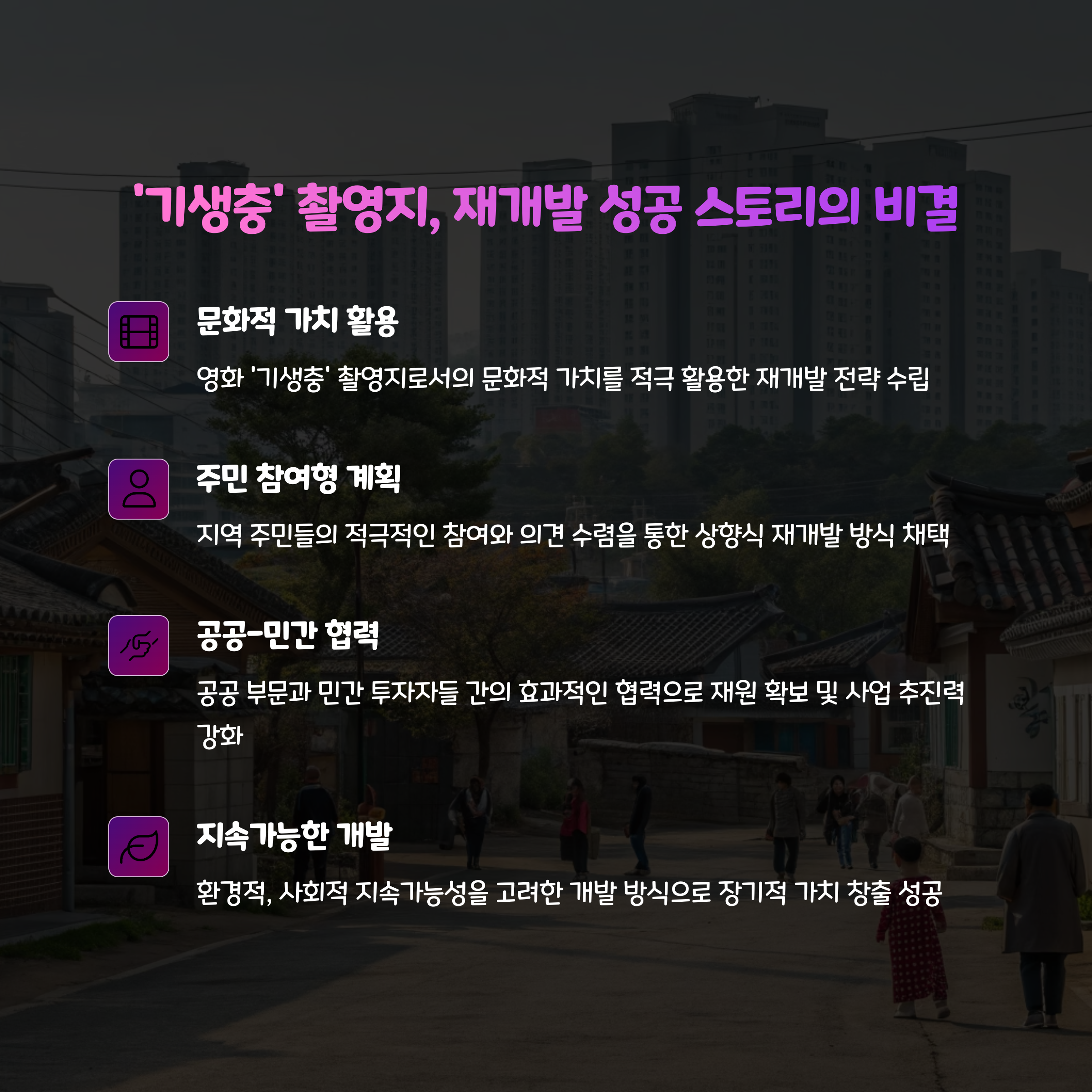 🏡 9. 영화 ‘기생충’ 촬영지, 재개발 성공 스토리