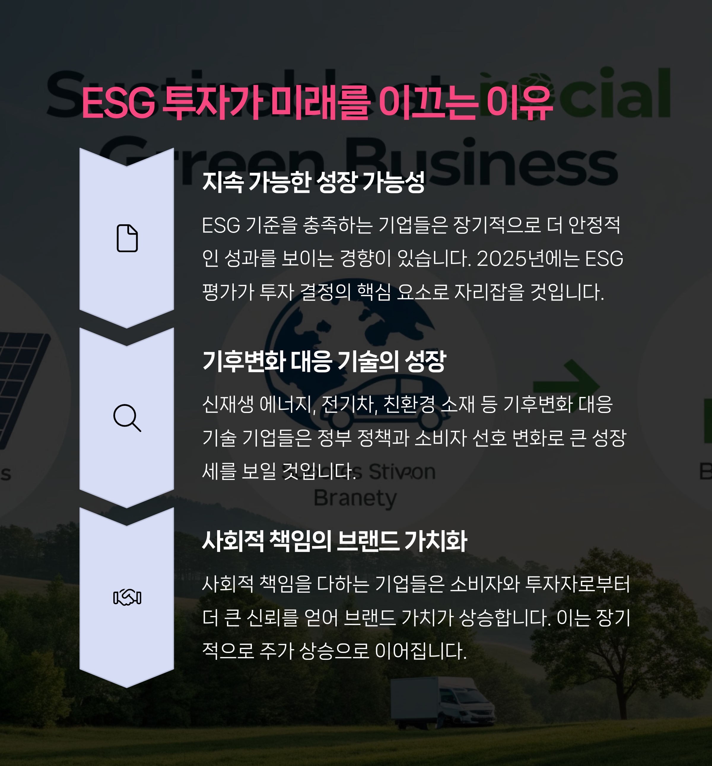 | 지속 가능성과 성장성 동시 고려 | 글로벌 기술주와 배당주 병행 | 투자 일지, 뉴스 모니터링 필수 |