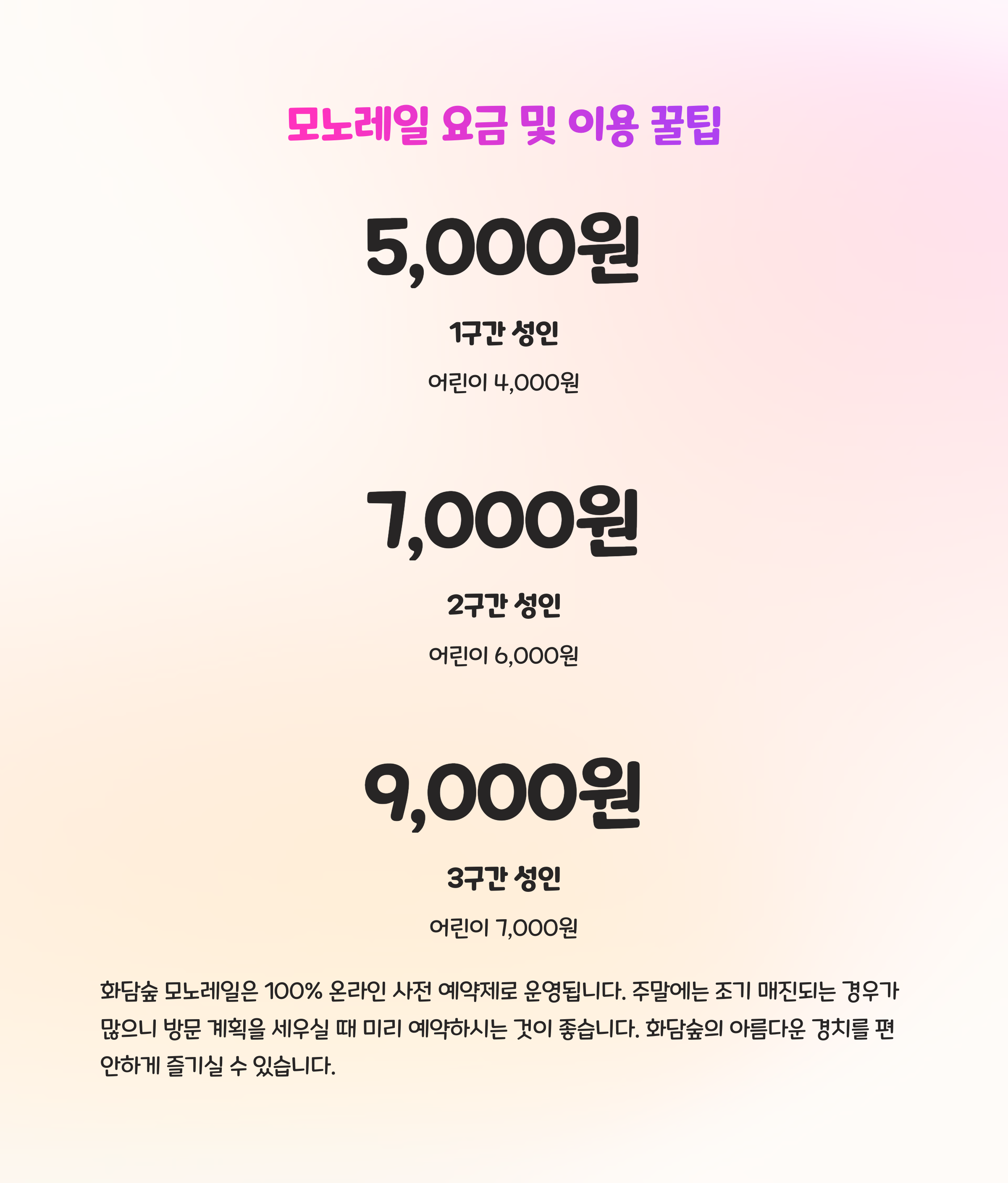 - 1구간: 성인 5,000원 / 어린이 4,000원