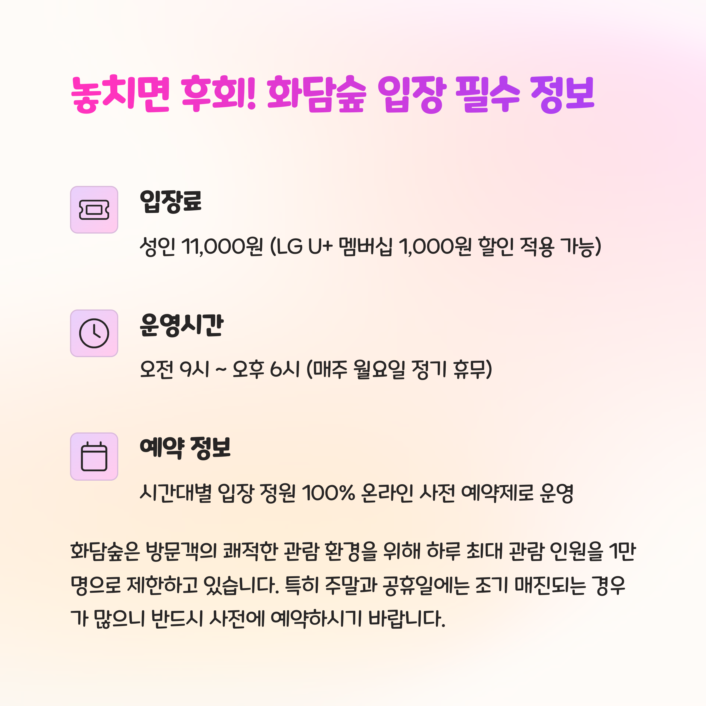 3. 화담숲 입장료, 운영시간, 주차 꿀팁