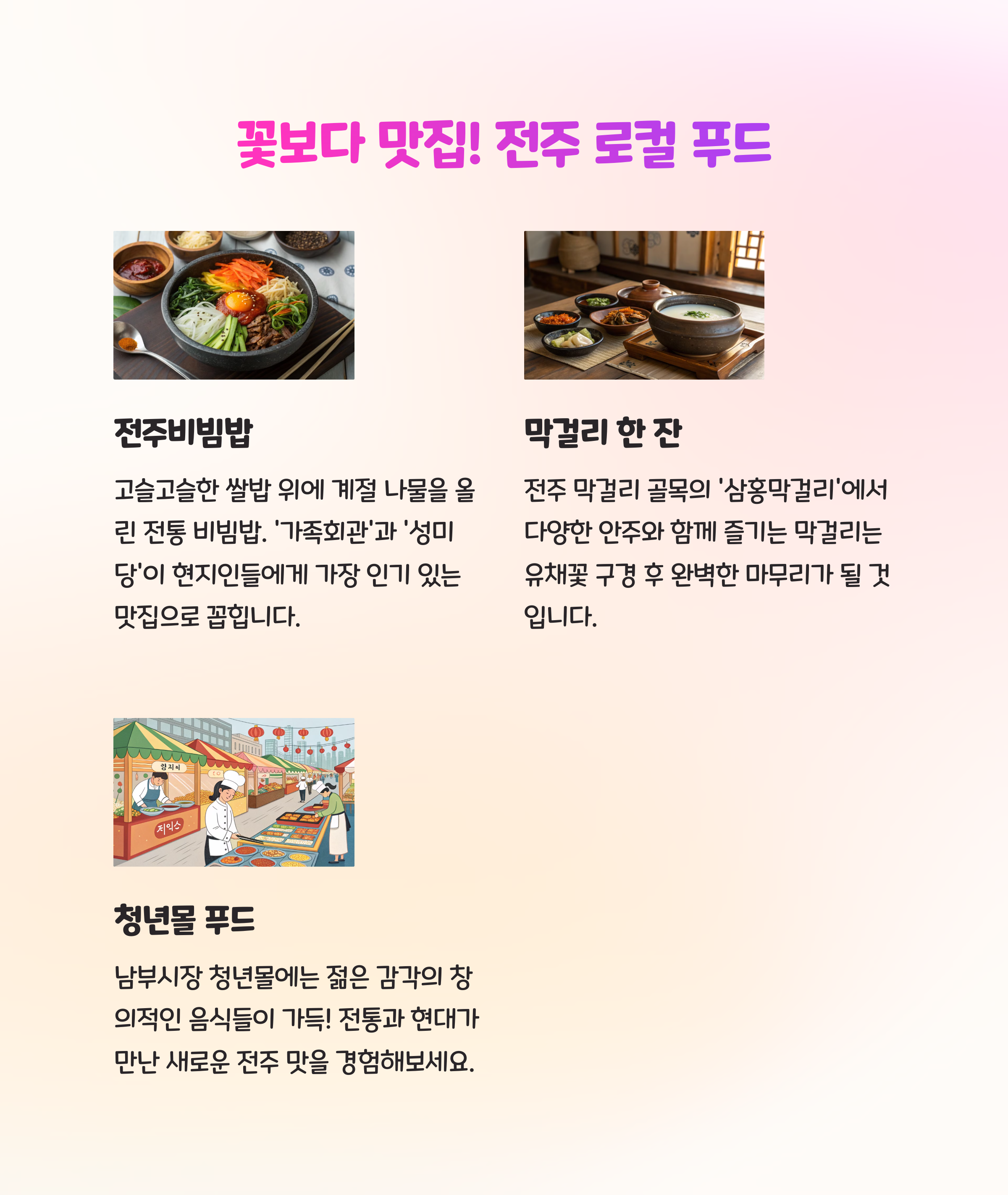 💬 댓글로 여러분의 전주 인생샷 후기나 숨겨진 유채꽃 명소도 함께 공유해주세요!