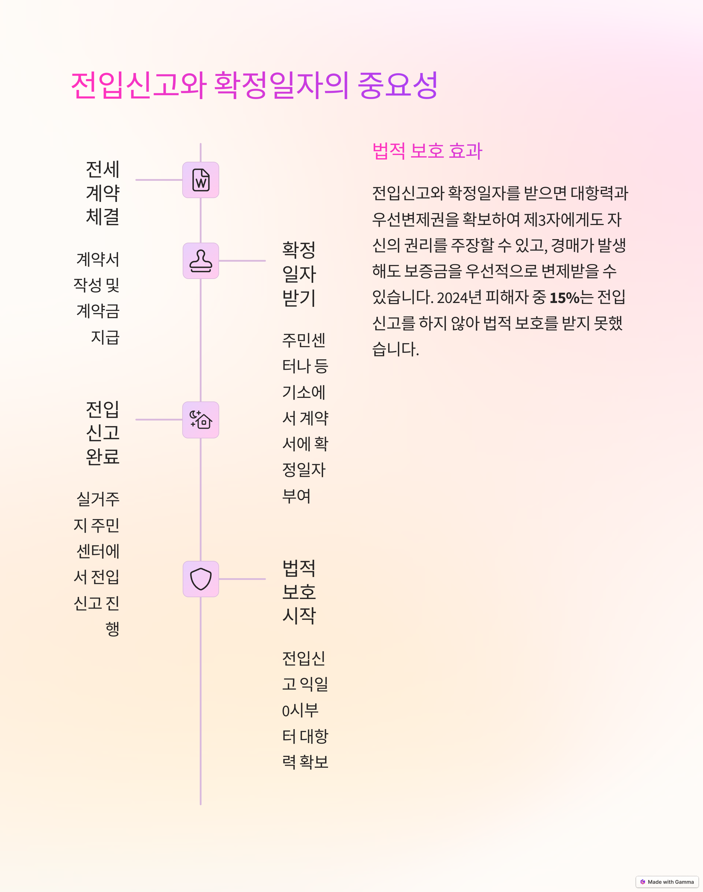전세 계약을 맺을 때는 단순한 서명 이상의 주의가 필요합니다. 특히 전입신고와 확정일자는 대항력과 우선변제권을 갖기 위한 필수 절차입니다.