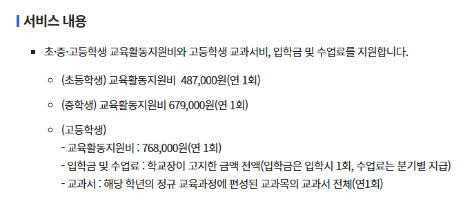 • 교육급여 바우처 신청 가능 (교육 관련 제품·서비스 구매)