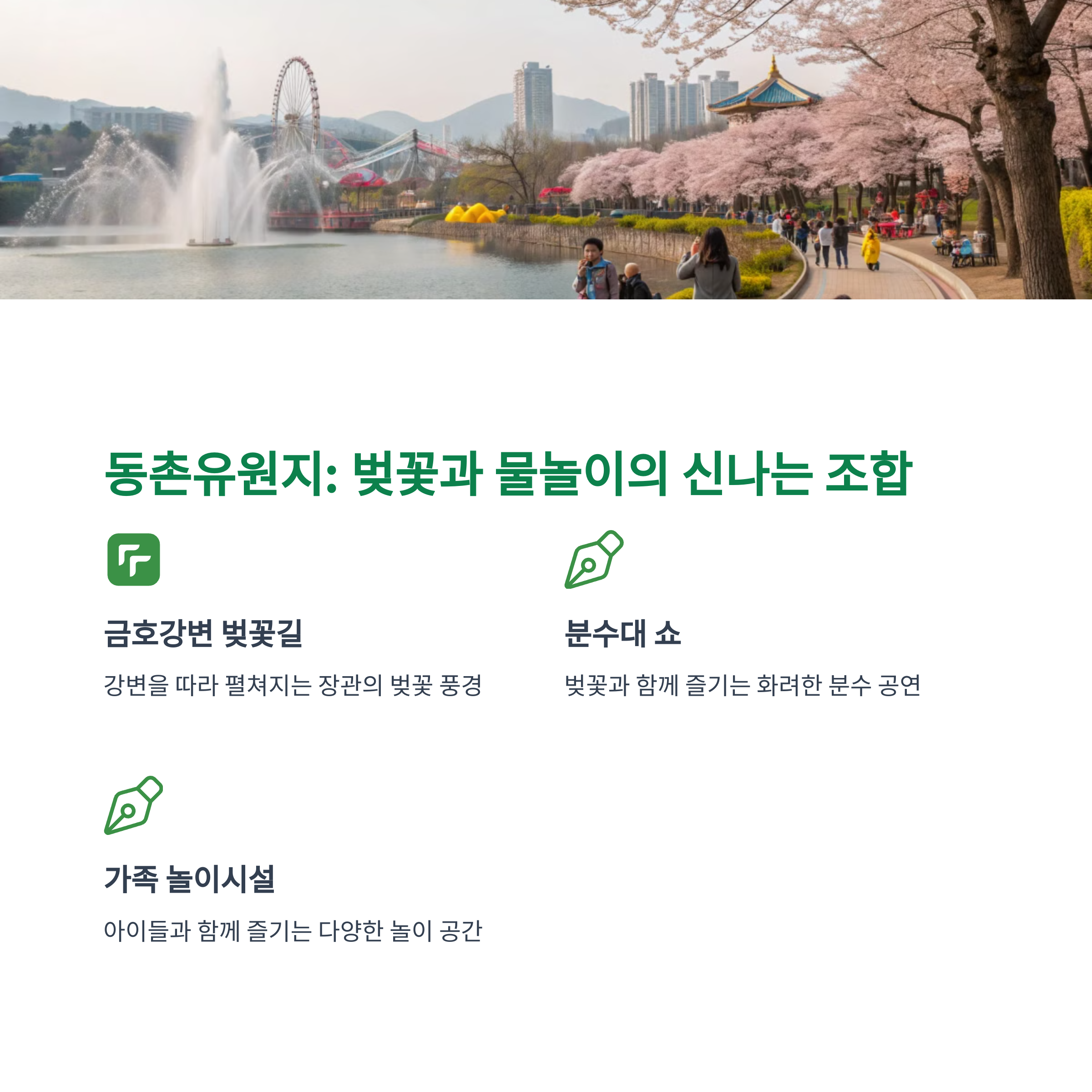 아이들과 함께 방문한다면 다양한 놀이시설과 함께 벚꽃을 감상할 수 있어 더욱 즐거운 추억을 만들 수 있습니다.