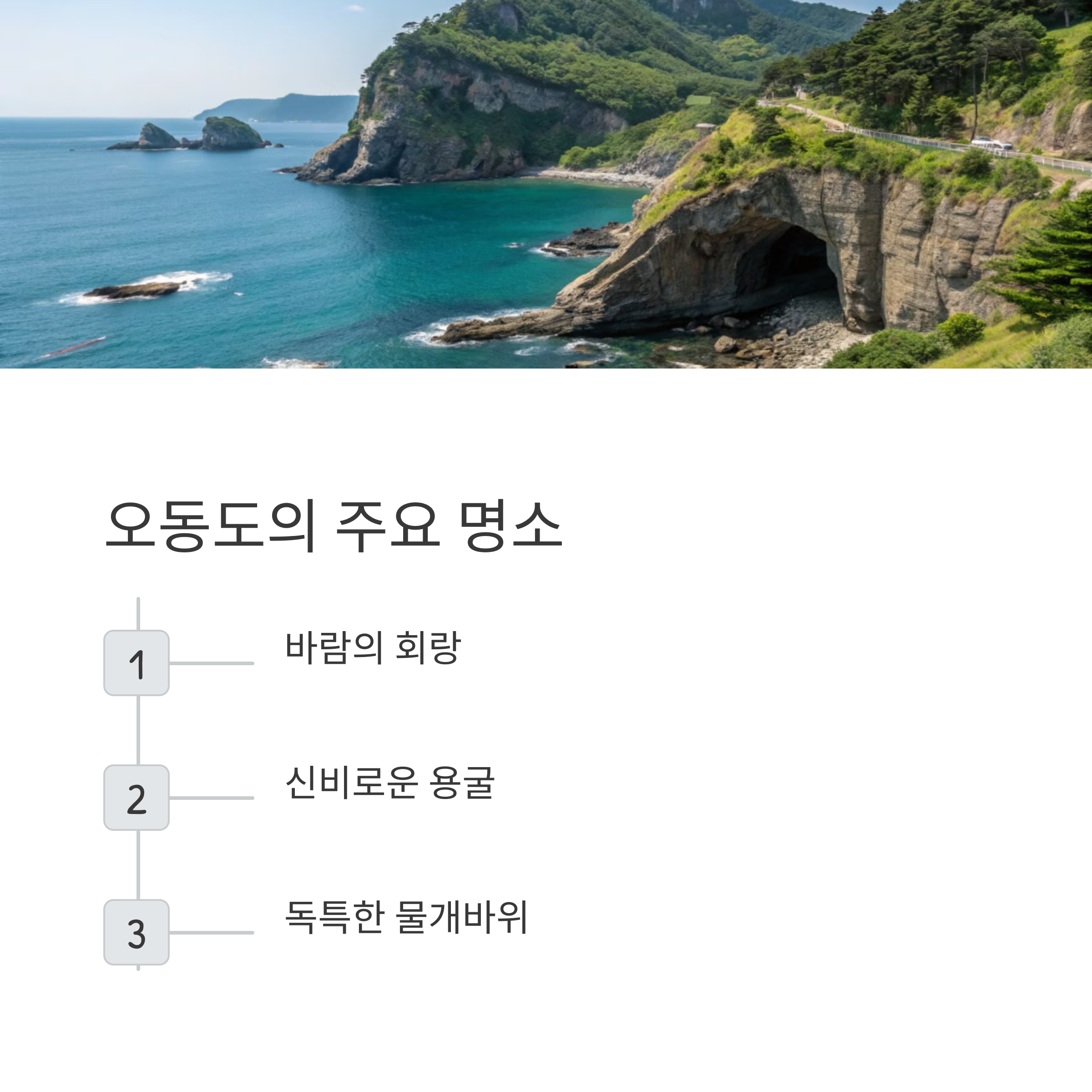 | 바람의 회랑 | 용굴과 물개바위 | 3~4월 벚꽃도 개화 |