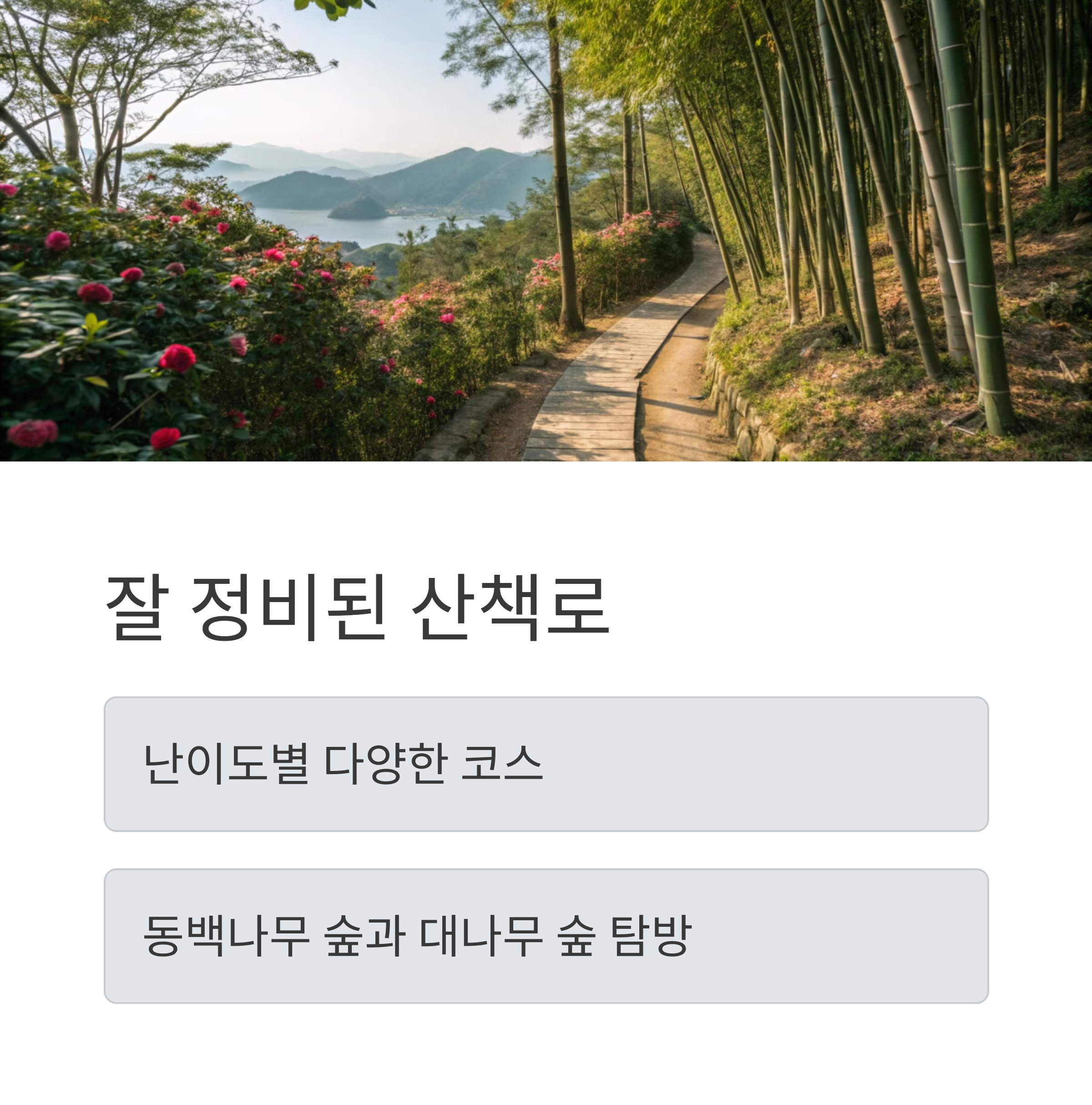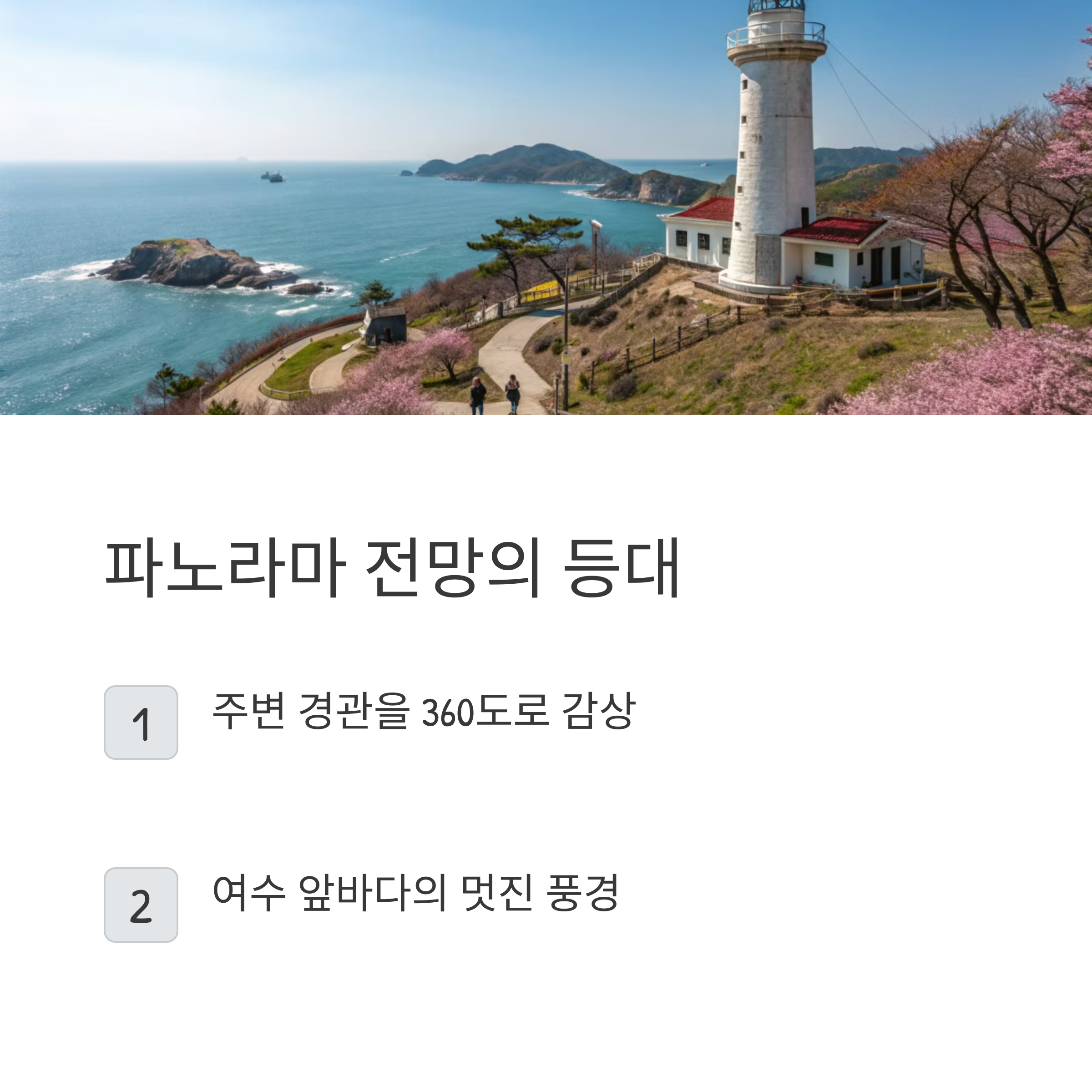 | 방문 추천 포인트 | 동백꽃 터널, 바람의 회랑, 오동도 등대 전망 |