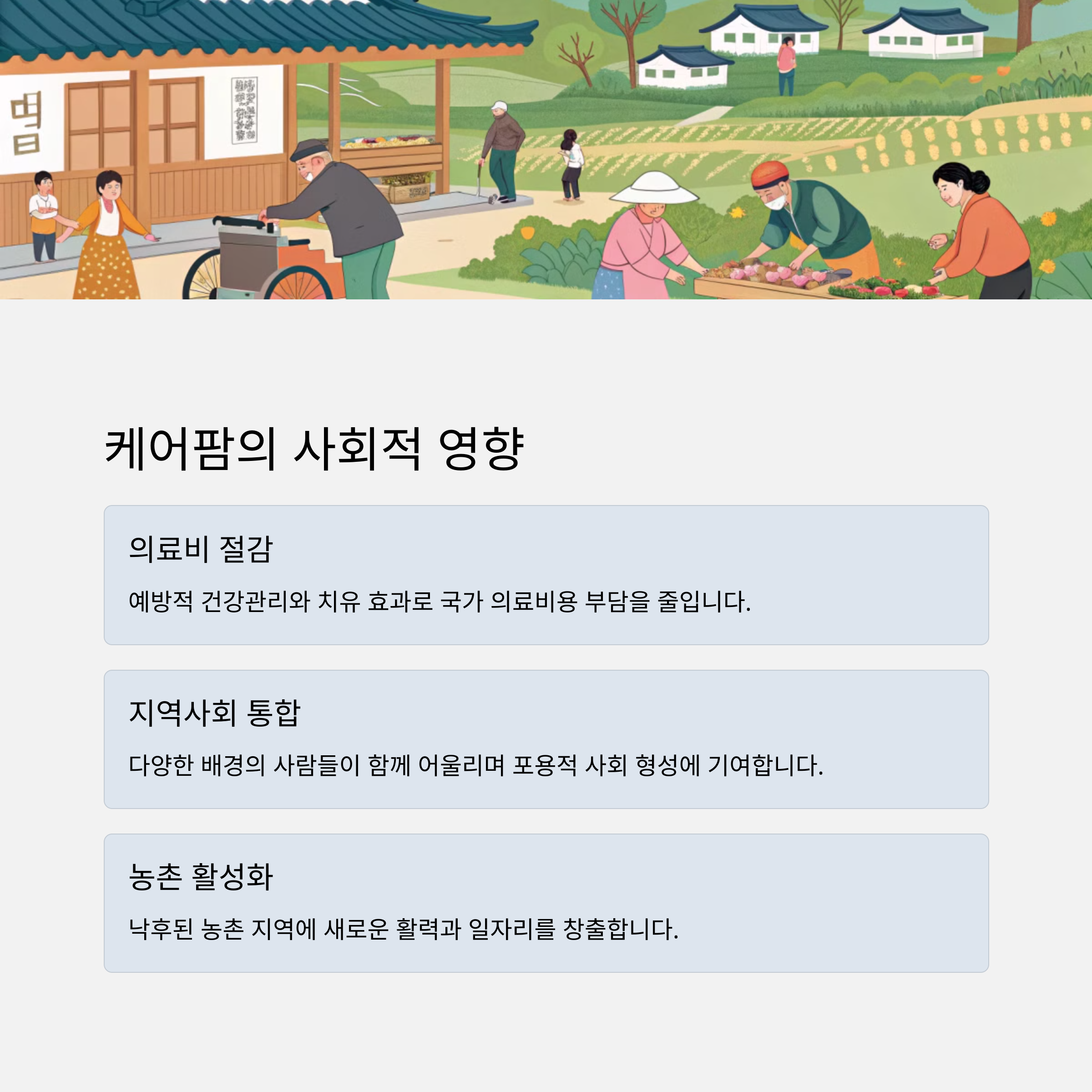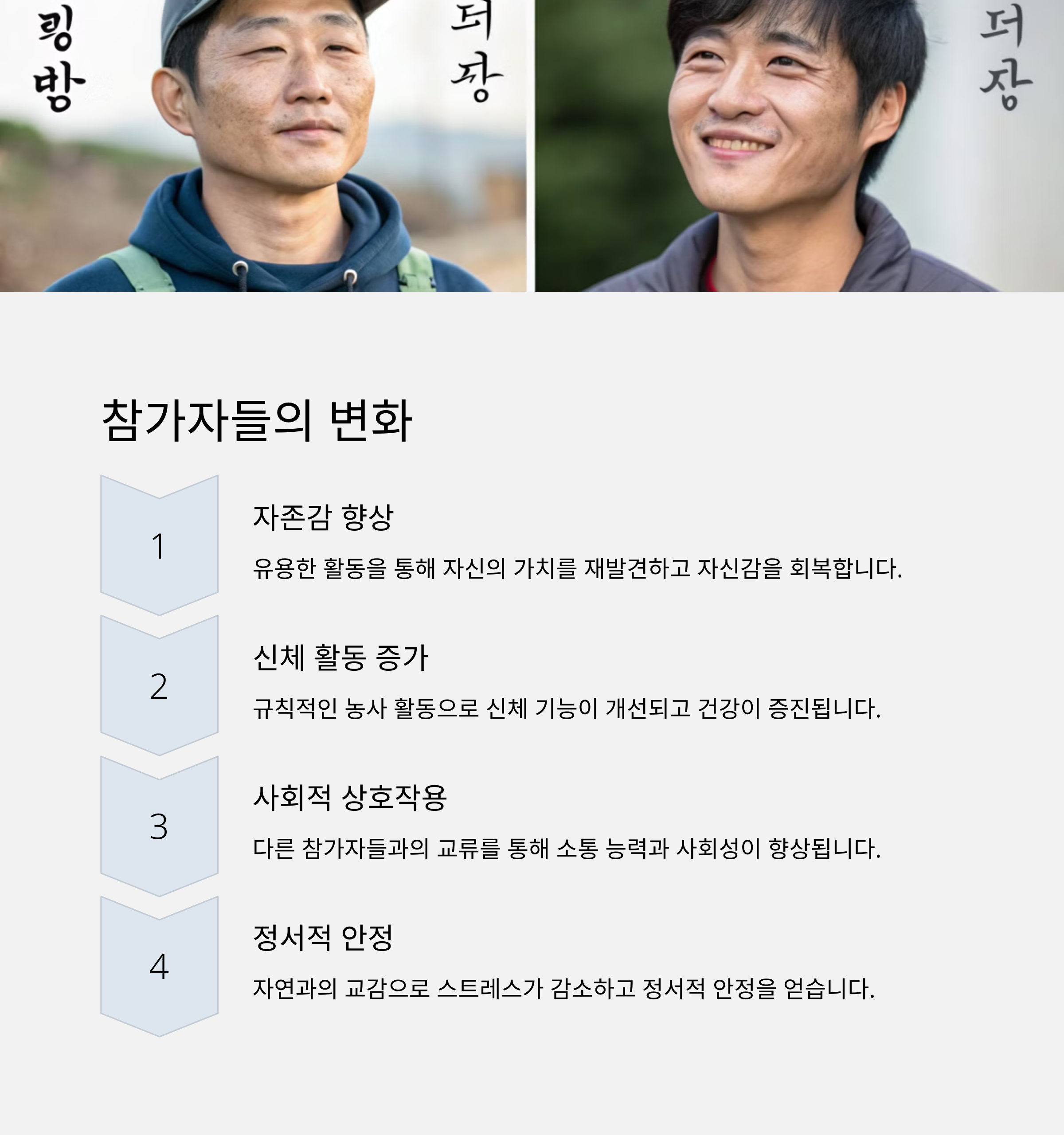 농업이 단순한 생산을 넘어 사람들에게 심리적 안정과 사회적 참여 기회를 제공할 수 있다는 점에서, 치유농장은 매우 혁신적인 모델이라 할 수 있습니다.