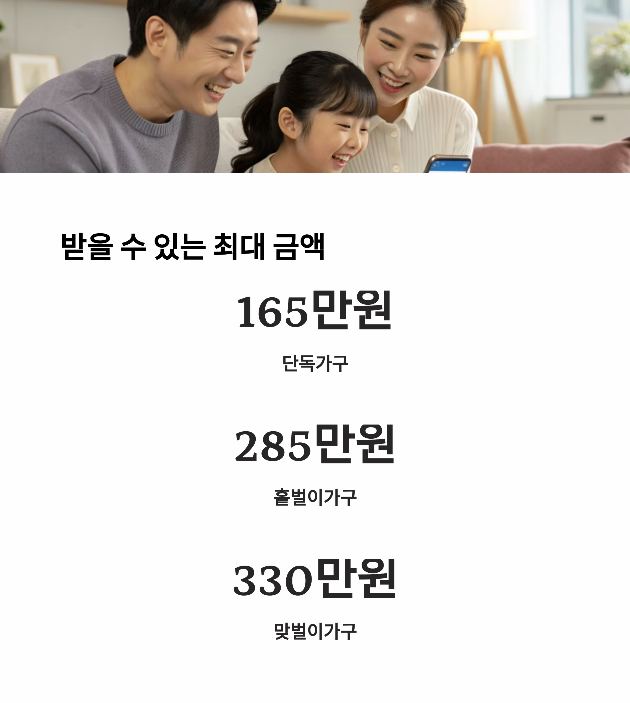 | 가구유형별 기준 | 신청 일정 | 추가 정부지원금 |