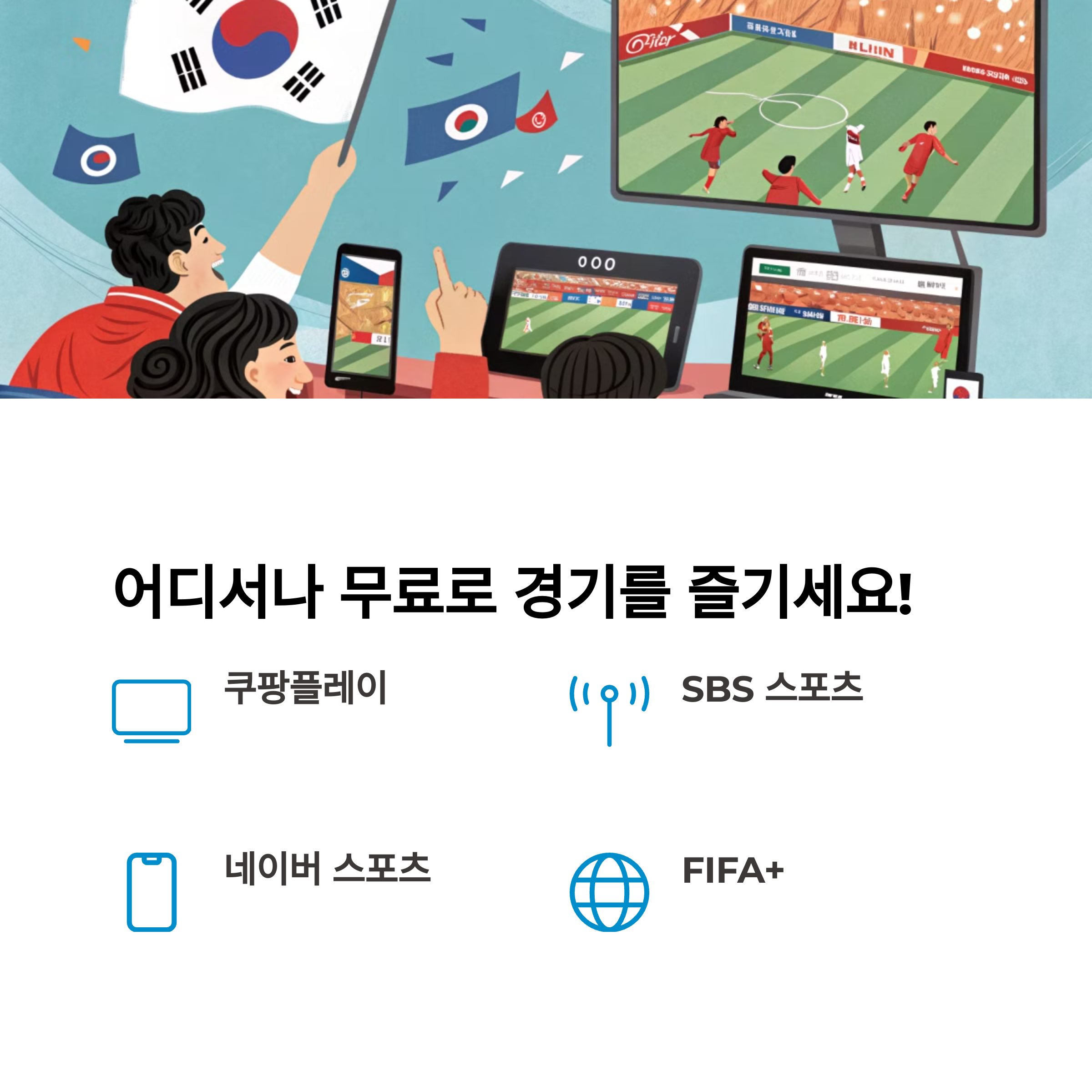 중계 방송 쿠팡플레이, SBS 스포츠, 네이버 스포츠, FIFA+