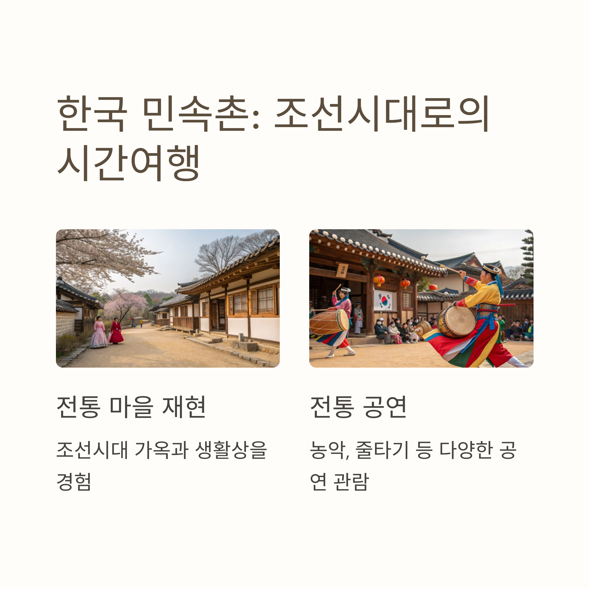| 한국 민속촌 | 조선시대 전통 마을을 체험 |