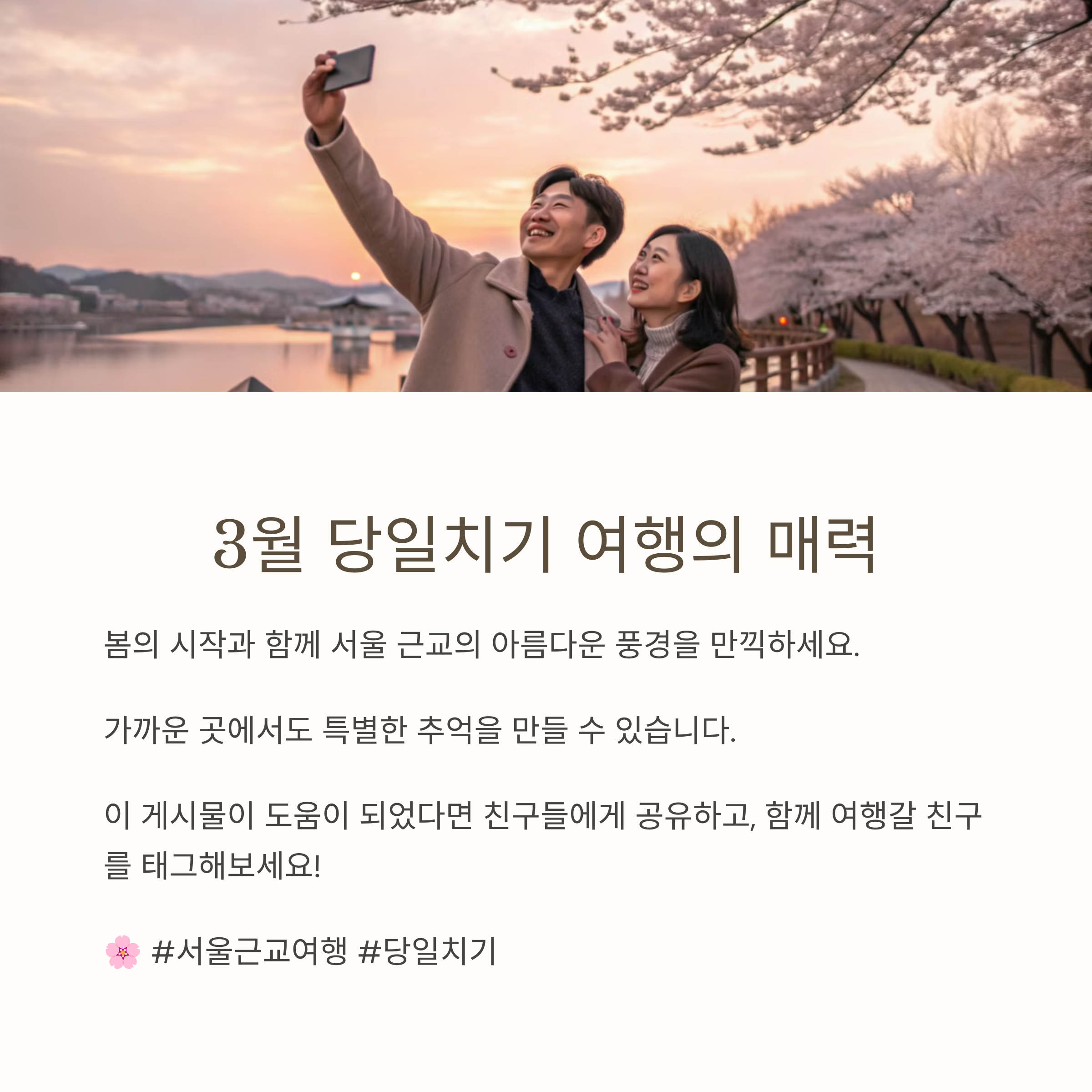 서울에서 가까운 당일치기 여행지로 즐거운 시간을 보내보세요! 🌸🌿