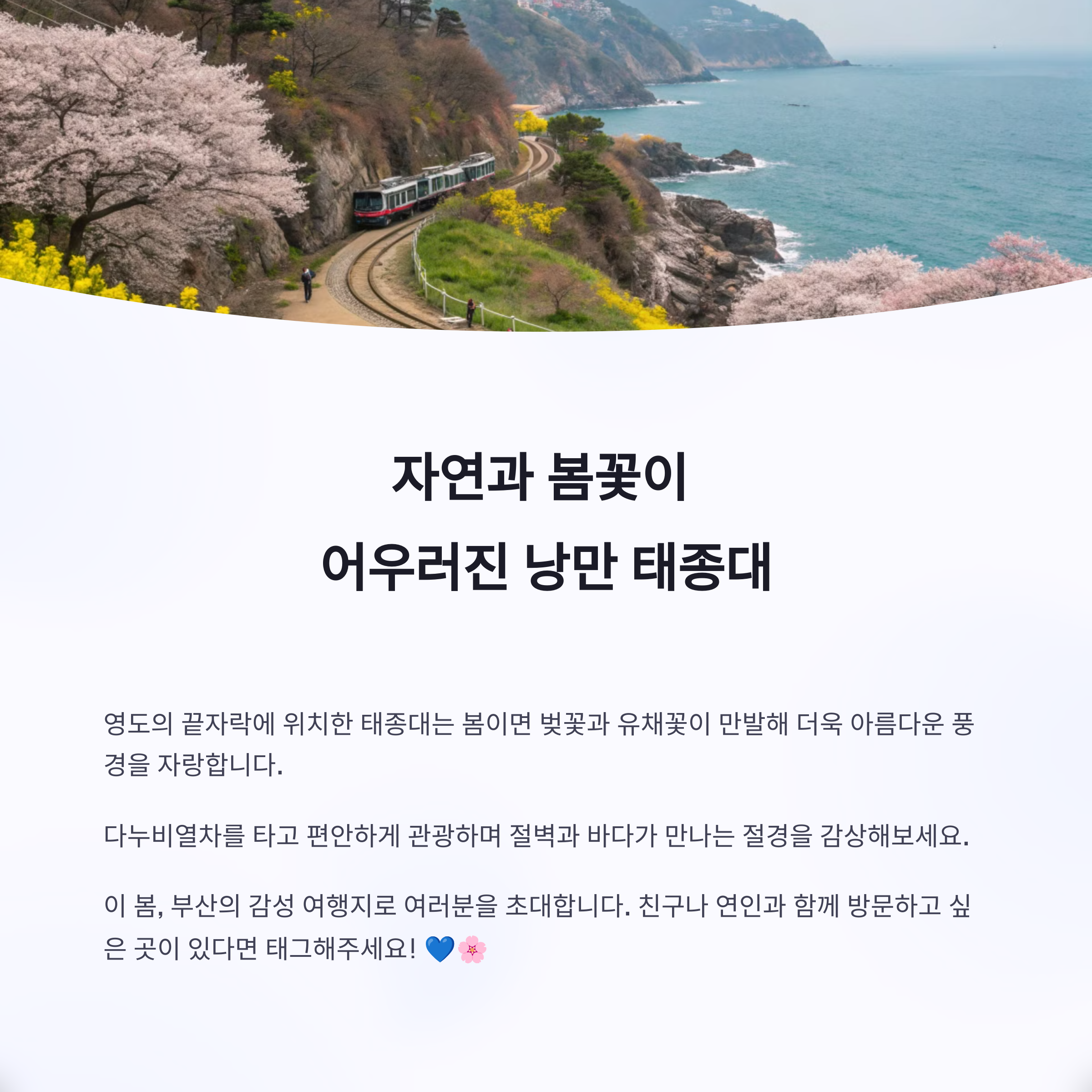 부산에서 봄을 만끽할 수 있는 명소들을 알아보시고, 올봄 여행 계획을 세워 보세요! 🌸🌊