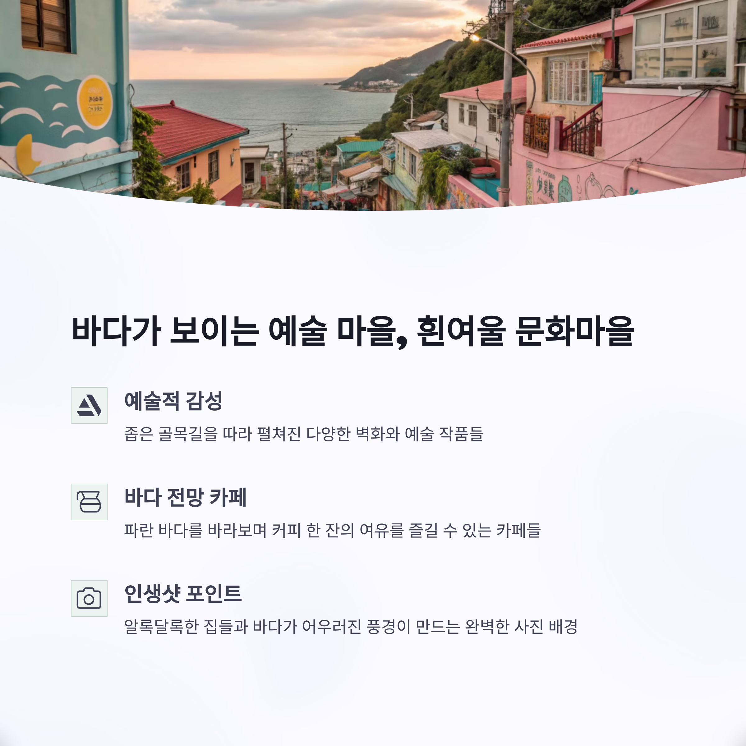 흰여울 문화 마을에서는 예술적인 분위기 속에서 힐링을 즐길 수 있습니다.