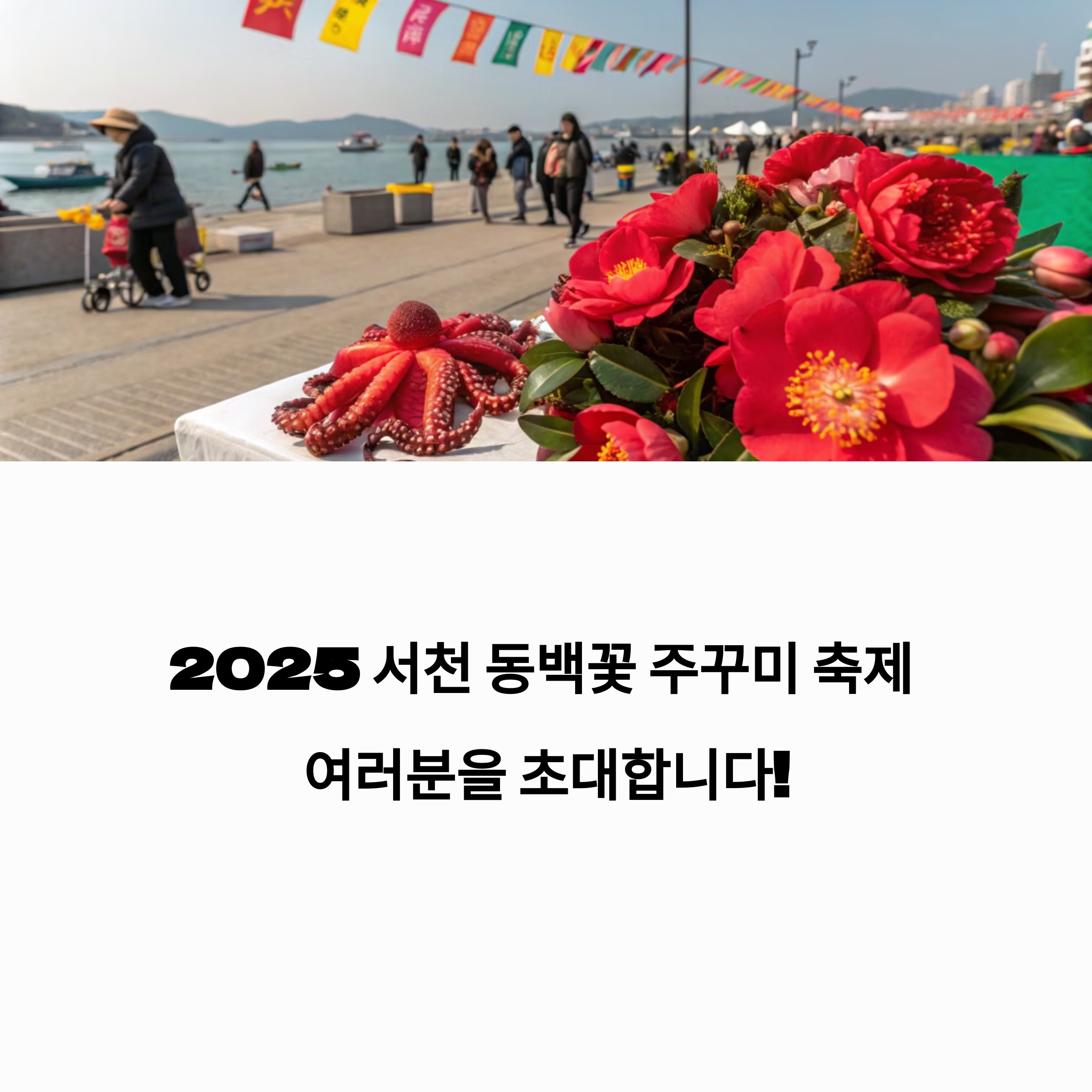 2025년 3월 15일부터 30일까지 충청남도 서천군 마량진항에서 서천 동백꽃 주꾸미 축제가 열립니다.🎉🎊