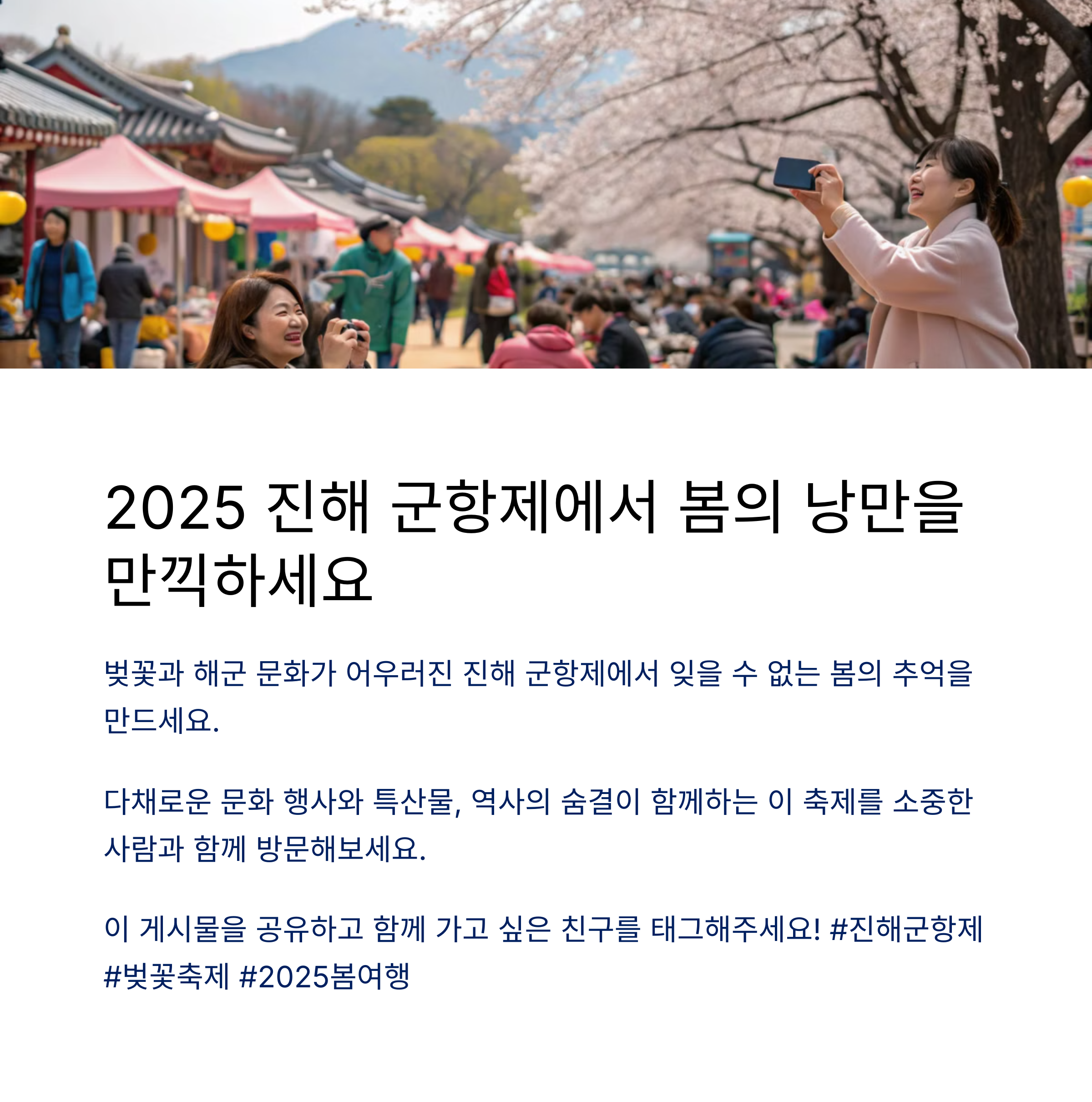 💬🗨️댓글로 여러분의 생각을 공유해 주세요! 진해 군항제의 매력을 더 많은 사람들에게 알리고 싶습니다.