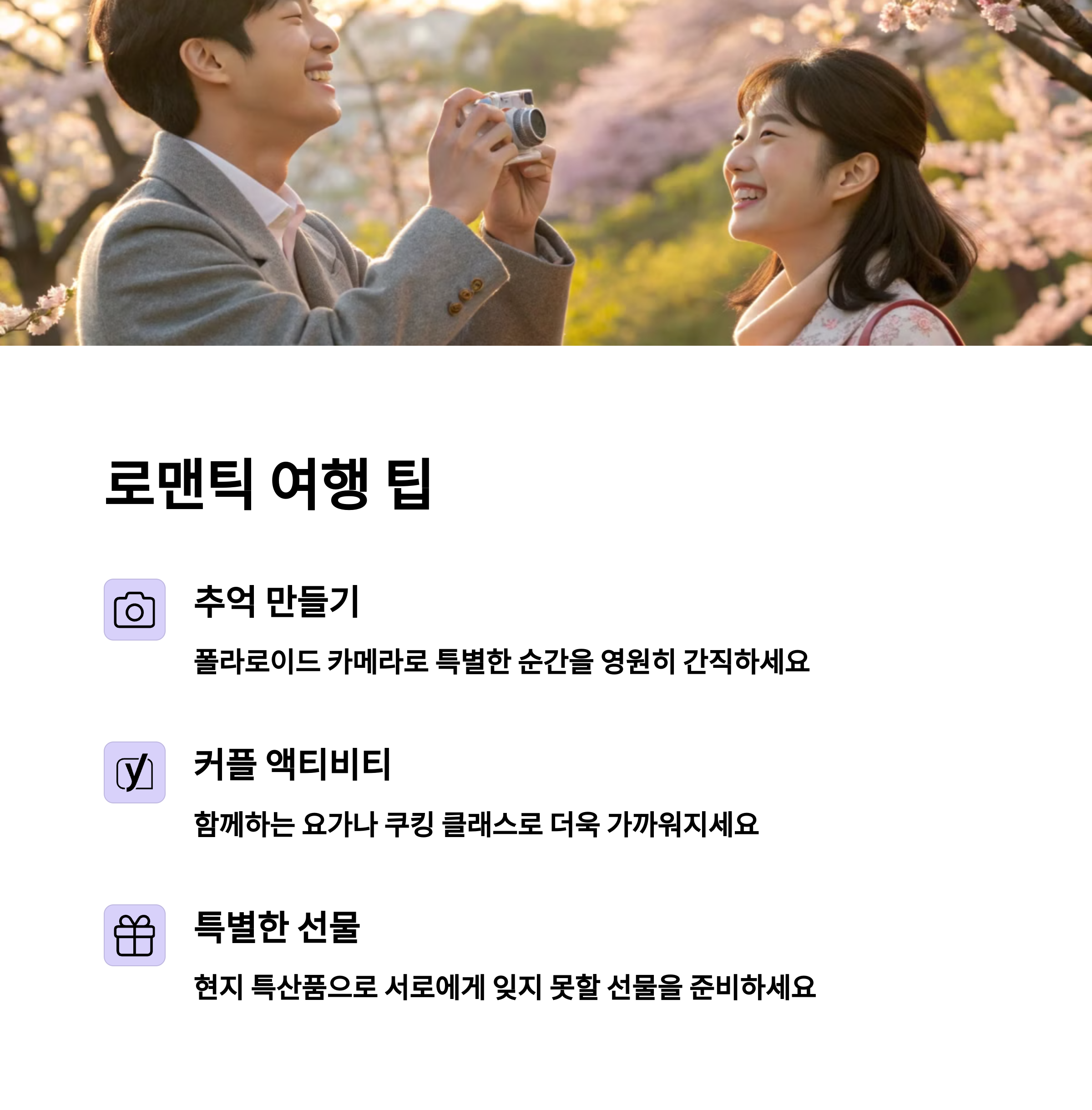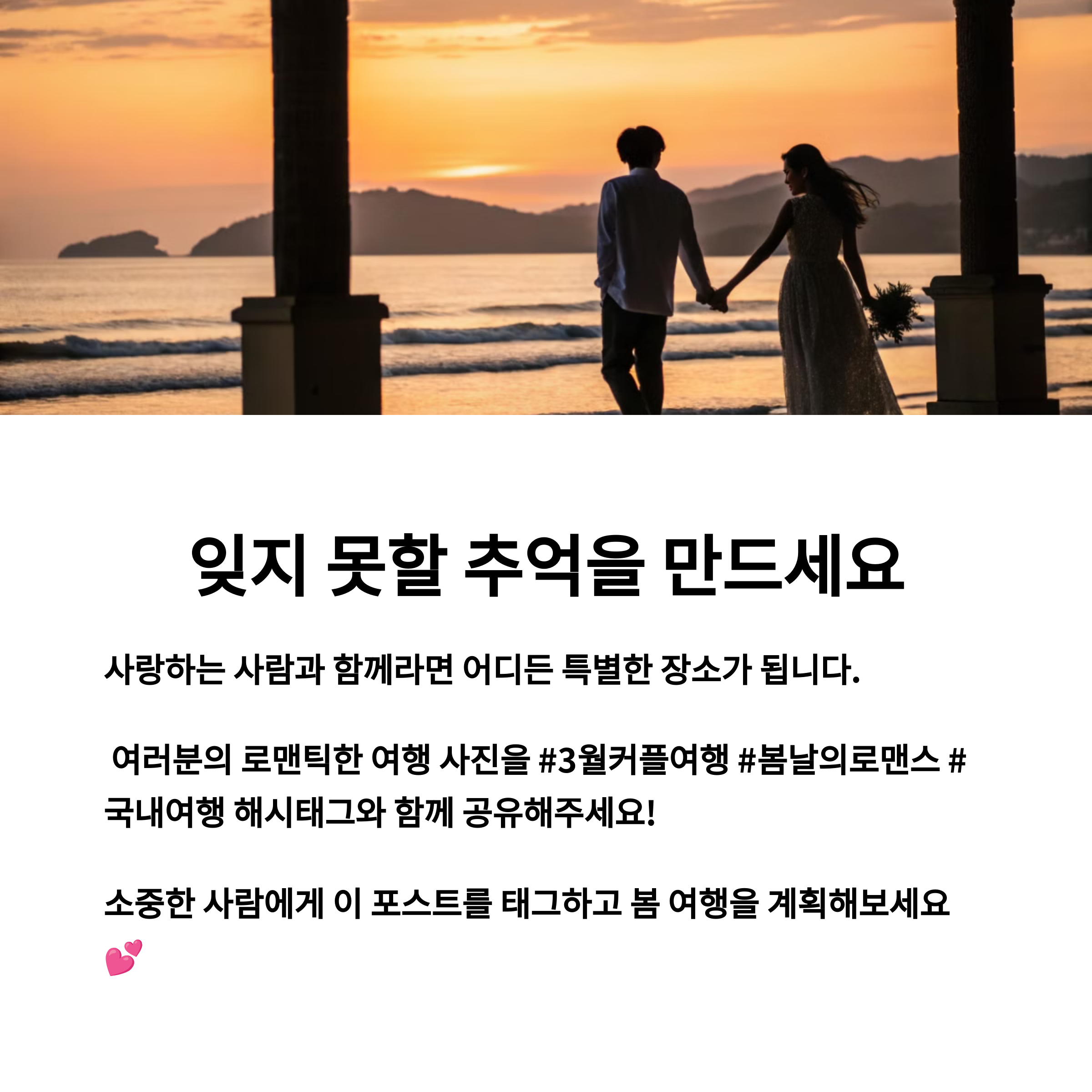 여러분이 추천하는 3월 커플 여행지는 무엇인가요? 아래 댓글로 여러분의 여행지를 공유해 주세요.